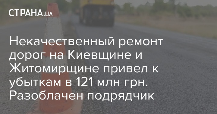 Некачественный ремонт дорог на Киевщине и Житомирщине привел к убыткам в 121 млн грн. Разоблачен подрядчик