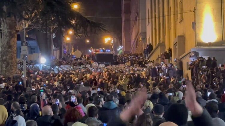 Полиция в Тбилиси пытается разогнать митингующих людей. Фото: скриншот с видео