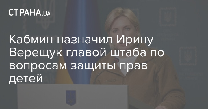 Кабинет министров Украины назначил вице-премьера Ирину Верещук главой штаба по вопросам защиты прав детей.