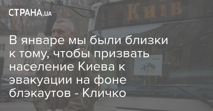 В январе мы были близки к тому, чтобы призвать население Киева к эвакуации на фоне блэкаутов - Кличко