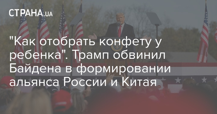 "Байден сделал именно это. У них теперь большой красивый альянс. Они толкнули Россию прямо в руки Китая. Для Китая это было как отобрать конфету у ребенка. Это было очень просто", - сказал Трамп.