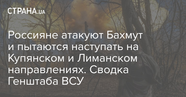 Россияне атакуют Бахмут и пытаются наступать на Купянском и Лиманском направлениях. Сводка Генштаба ВСУ