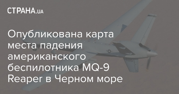 Командование ВВС США в Европе и Африке опубликовало карту места падения американского беспилотника MQ-9 Reaper в районе Крыма в Черном море.