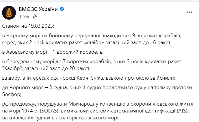 Как писала "Страна", 17 марта РФ вывела в Черное море 4 судна-носителя крылатых ракет.