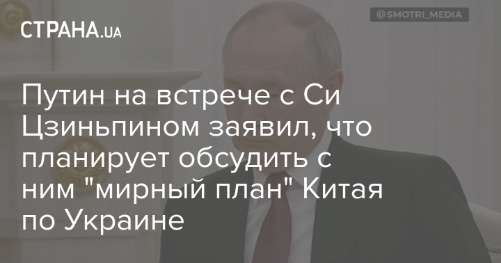 Президент России Владимир Путин на встрече с лидером Китая Си Цзиньпином заявил, что внимательно ознакомился с "мирным планом" Китая по Украине. Он сказал, что намерен этот план обсудить во время переговоров с Си и что "Россия всегда открыта для переговорного процесса".