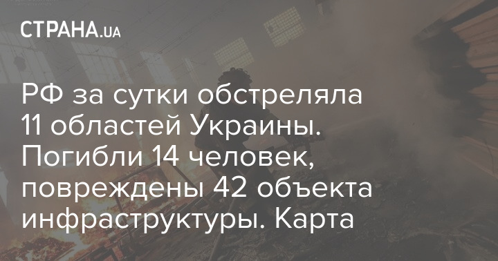 РФ за сутки обстреляла 11 областей Украины. Погибли 14 человек, повреждены 42 объекта инфраструктуры. Карта
