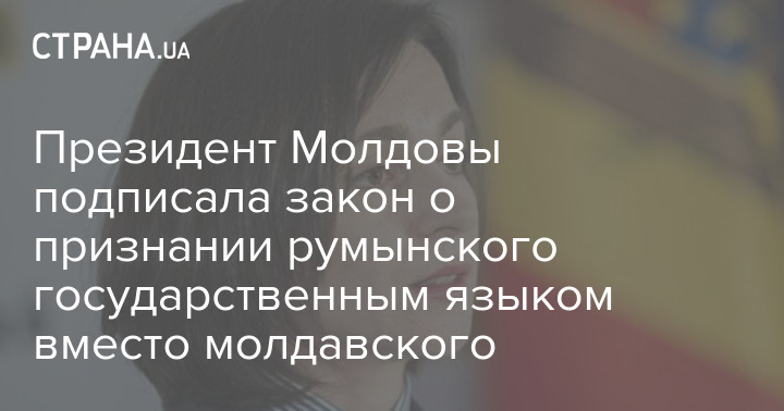 Президент Молдовы Майя Санду подписала закон, который признает государственным языком республики румынский вместо молдавского.