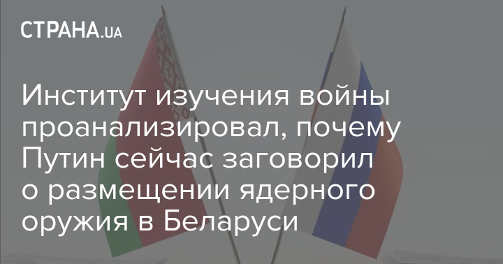 Институт изучения войны проанализировал, почему Путин сейчас заговорил о размещении ядерного оружия в Беларуси