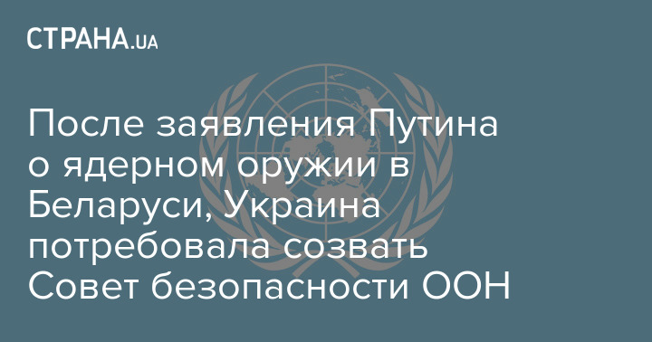 Украина требует немедленно созвать внеочередное заседание Совета Безопасности ООН по поводу заявления Путина о намерении России разместить тактическое ядерное оружие на территории Беларуси.