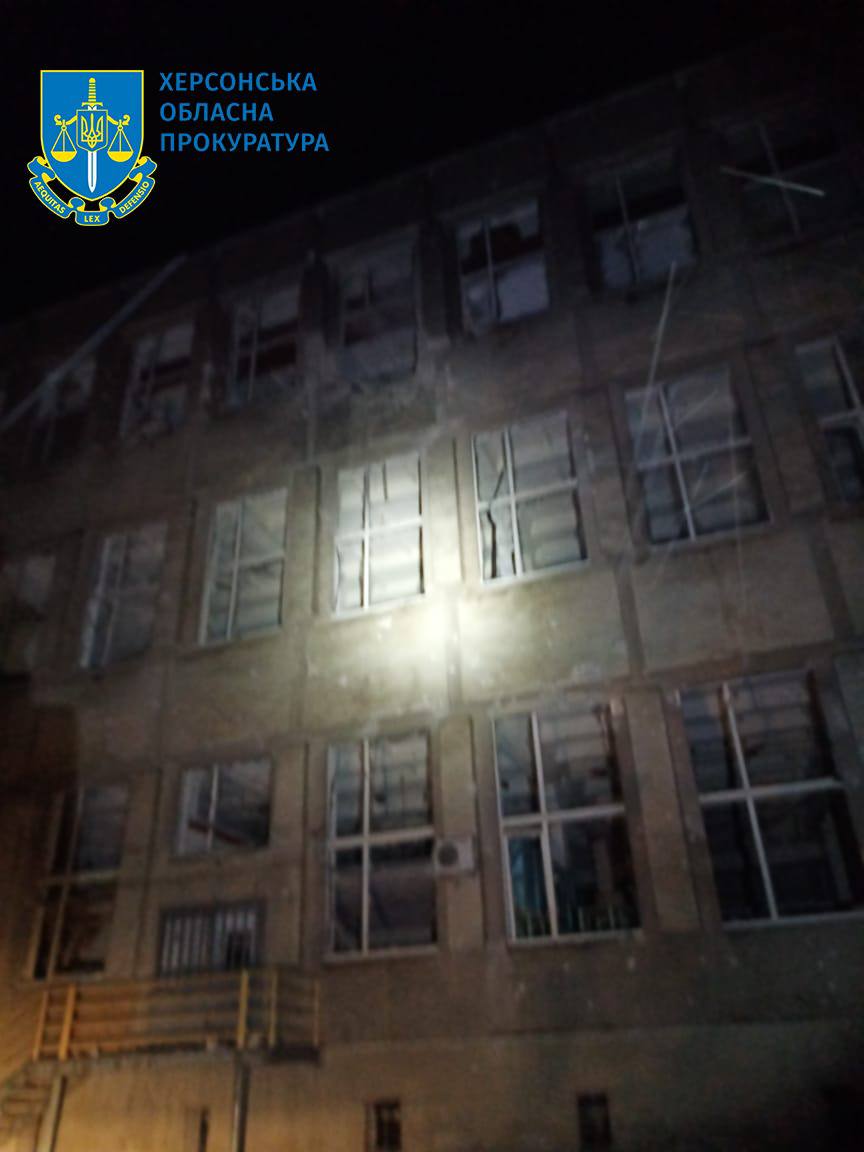 Ночью войска РФ обстреляли Херсон. Попадание пришлось по клинической больнице и почте. Фото