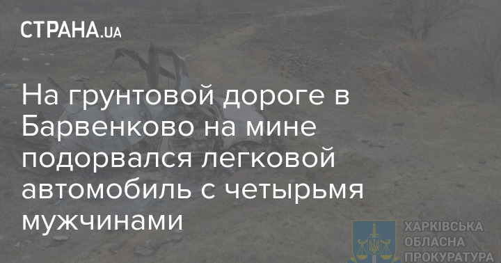 По данным следствия, днем 29 марта в Барвенково Изюмского района легковой автомобиль на грунтовой полевой дороге наехал на мину и взорвался. Погибли 16-летний парень и 34-летний мужчина. Получили ранения двое мужчин 24 и 20 лет. Они госпитализированы.