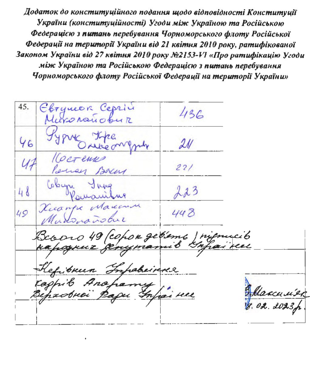Как сказано в посте, сегодня в КСУ поступило представление от 49 народных депутатов Украины. Среди подписантов обращения депутаты нескольких фракций, в том числе "Слуги народа".