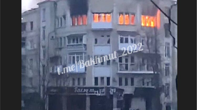 Горят дома. В центре Бахмута уже несколько часов продолжается сильный обстрел. Видео