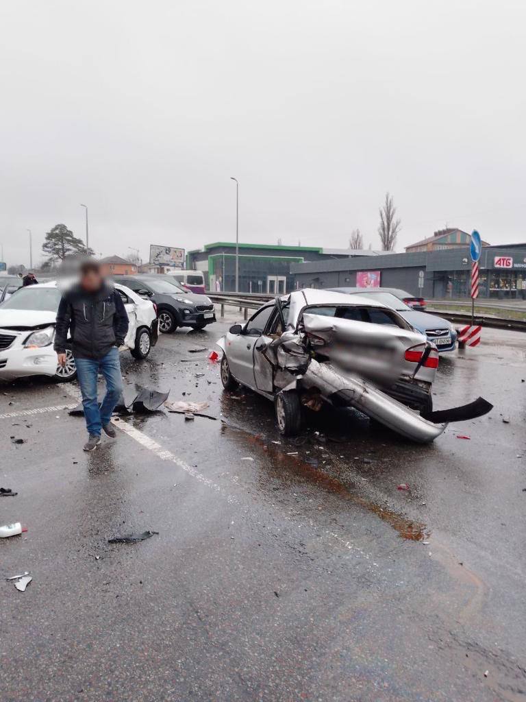 08.55 ДТП на Житомирской трассе произошло возле Капитановки. В него попали 10 транспортных средств.