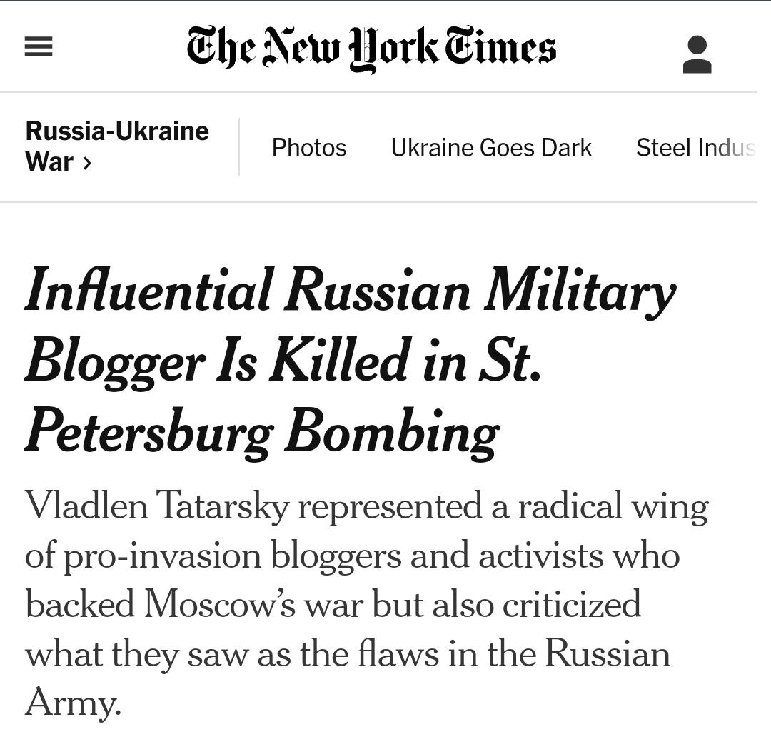 New York Times также делает акцент на критике командования со стороны Татарского.