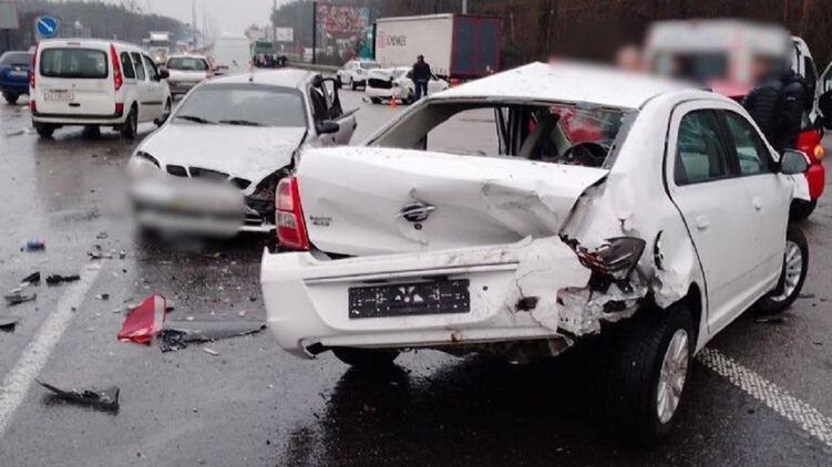 Утром в понедельник, 3 апреля, на Житомирской трассе столкнулись десять транспортных средств, 12 человек пострадали. ДТП произошло возле Капитановки.