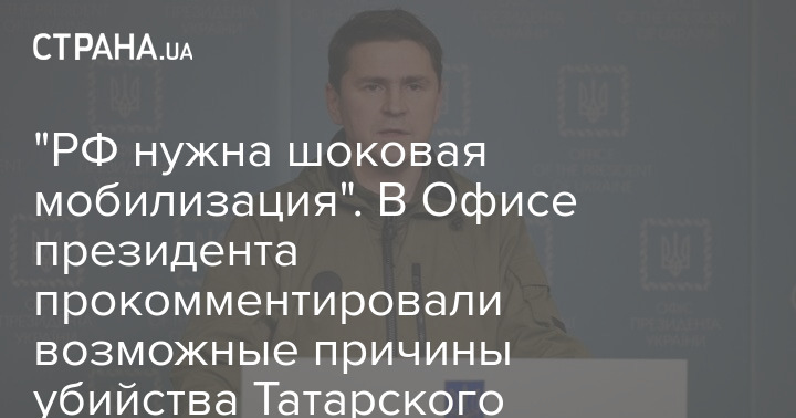В Офисе президента Украины заявили, что убийство военкора Владлена Татарского должно подстегнуть россиян к участию в мобилизации.