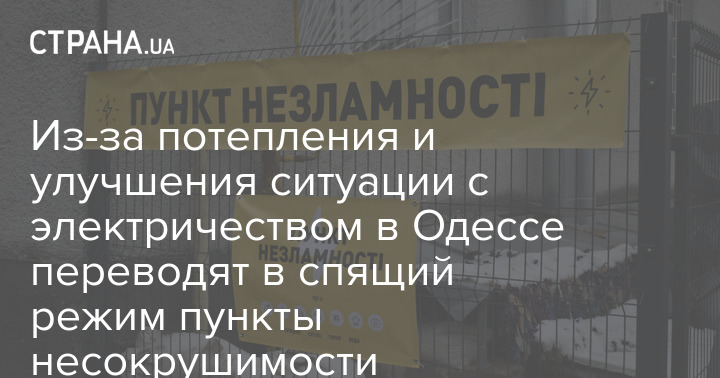 В связи с улучшением погодных условий и стабилизацией ситуации с электроснабжением большинство пунктов несокрушимости на территории Одесского района переведены в спящий режим.