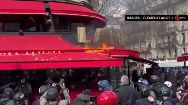 Протестующие против пенсионной реформы подожгли любимый ресторан Макрона в Париже. Видео