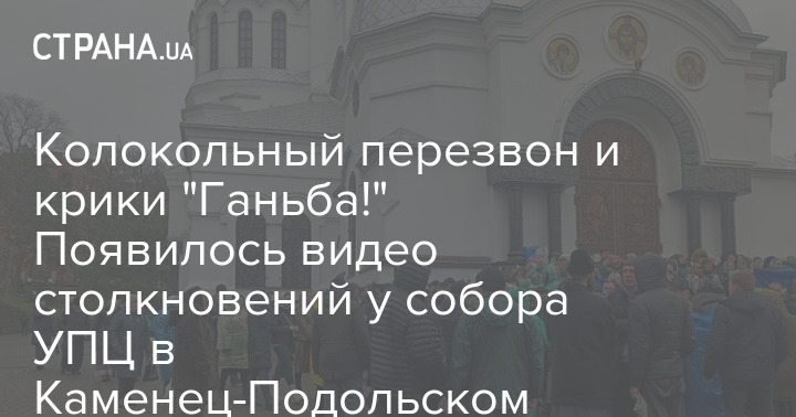 Появилось видео агрессивных перепалок и столкновений перед собором Александра Невского в Каменец-Подольском, где сегодня продолжилось противостояние верующих УПЦ и их противников.