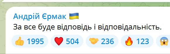 Глава ОП Андрей Ермак заявил, что "за все будет ответ и ответственность".