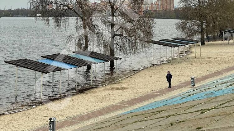 В результате подтопления практически полностью под водой оказался пляж на Оболонской набережной в Киеве.