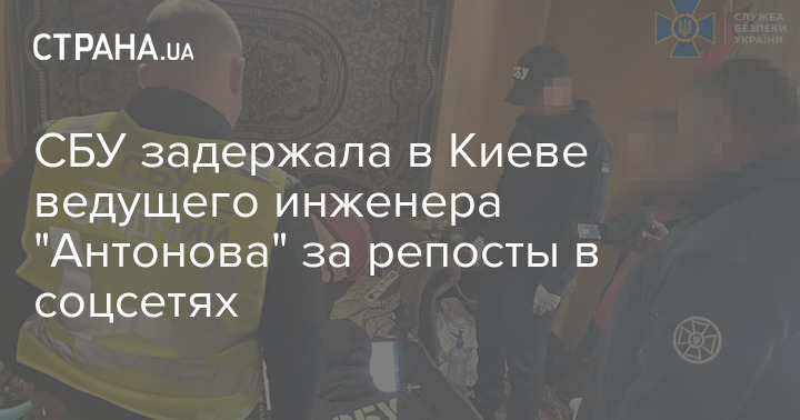 СБУ задержала в Киеве ведущего инженера госпредприятия авиапромышленности "Антонов". Сотрудника подразделения авиационной безопасности подозревают в информационной работе на РФ.
