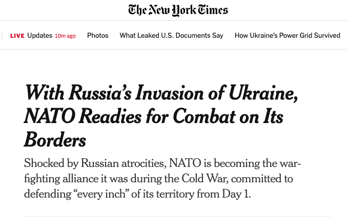 После вторжения России в Украину НАТО готовится к боевым действиям на ее границах, пишет New York Times.