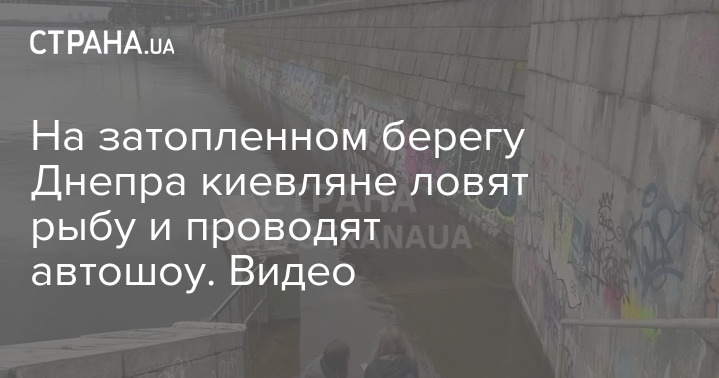 В Киеве из-за обильных дождей на затопленном берегу Днепра ловят рыбу и устраивают автошоу.