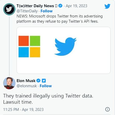 "Они незаконно тренировались, используя данные Twitter. Время судебного разбирательства", - ответил Маск на твит.