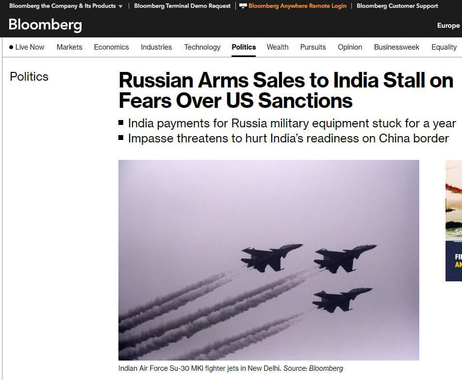 Индия не может оплачивать уже поставленное российское оружие из-за санкций США — Bloomberg