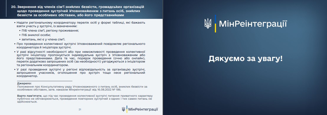 - Как взаимодействовать с территориальными центрами комплектации и социальной поддержки для семей исчезнувших.
