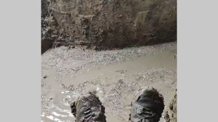 На видео можно заметить, что земля в окопах из-за потоков воды размокла и превратилась в грязь.