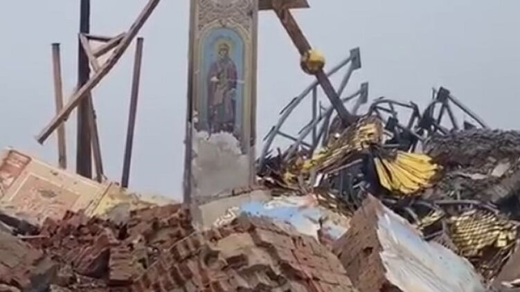В мае прошлого года в здании снарядом пробило центральный купол и повредило обстрелами главки малых куполов и крышу.