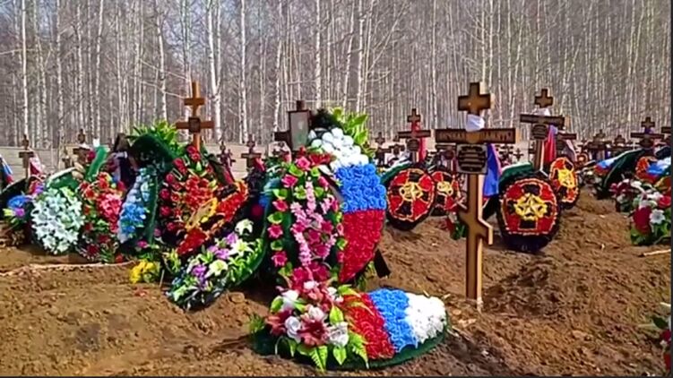 На могилах расположены одинаковые кресты с указанием имен мужчин и датами их рождения и смерти, основная часть из которых относится к концу 2022 года и первым месяцам 2023 года.