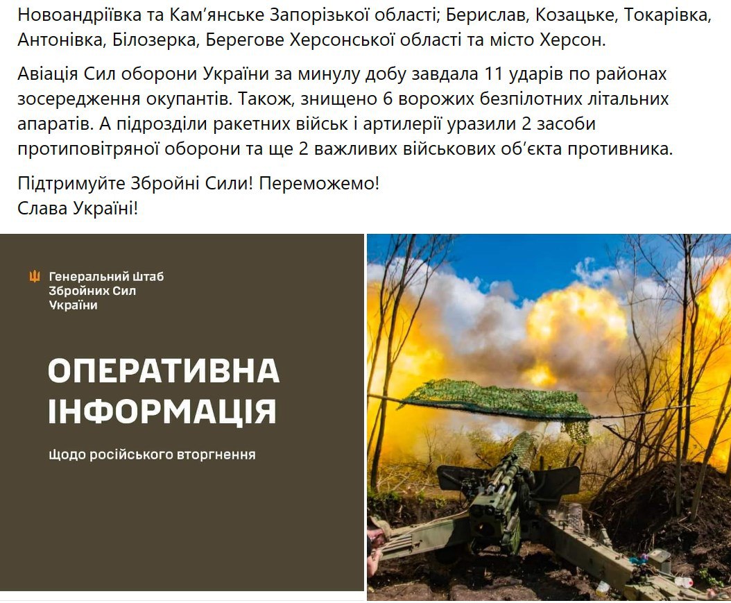 Об этом сообщается в сводке Генштаба.