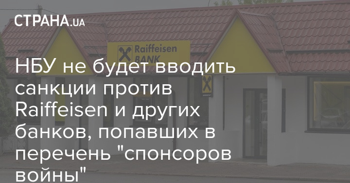 В конце марта 2023 года НАПК назвало спонсором войны австрийскую финансовую группу Raiffeisen Bank International, чья "дочка" продолжает работать в РФ, и платит налоги в этой стране. В адрес Нацбанка Украины после этого пошли запросы - можно ли считать спонсором терроризма и применять санкции к украинскому Райффайзен Банку, входящему в австрийскую группу. Теперь же из ответа НБУ понятно, что ограничения и запреты к нему применять не планируют.