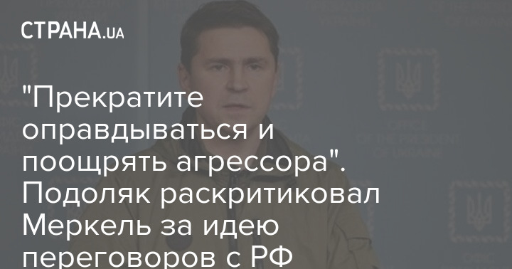 На Банковой раскритиковали экс-канцлера Германии Ангелу Меркель за ее мысль о возможности мирных переговоров с Россией. Так, советник главы Офиса президента Михаил Подоляк обвинил ее в пренебрежении свободой Украины, заявив о том, что оправдывать агрессора нельзя.
