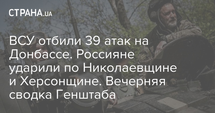 Украинские войска отбили 39 атак на трех направлениях на Донбассе. Россияне обстреляли Николаевскую и Херсонскую области.