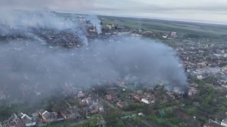 На видео можно заметить, что город почти полностью заволокло дымом от постоянных обстрелов и пожаров.