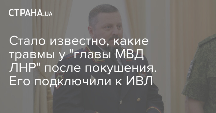 "Глава МВД ЛНР" Игорь Корнет подключен к аппарату искусственной вентиляции легких (ИВЛ) после покушения в центре Луганска.