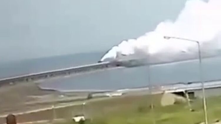 Также в сети появилось видео, на котором видно дым на Крымском мосту.