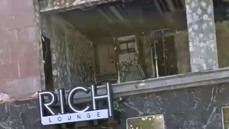 На кадрах можно увидеть, как люди отдыхают в ресторане, а рядом стоят дома без окон. Жители города сидят на летней террасе ресторана "RICH lounge". В самом здании, где находится заведение, судя по видео, проводится реконструкция после разрушений.