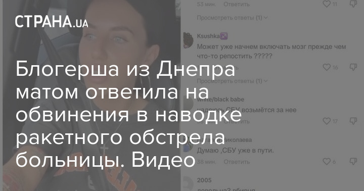 Блогерша из Днепра матом ответила на обвинения в наводке ракетного обстрела больницы. Видео