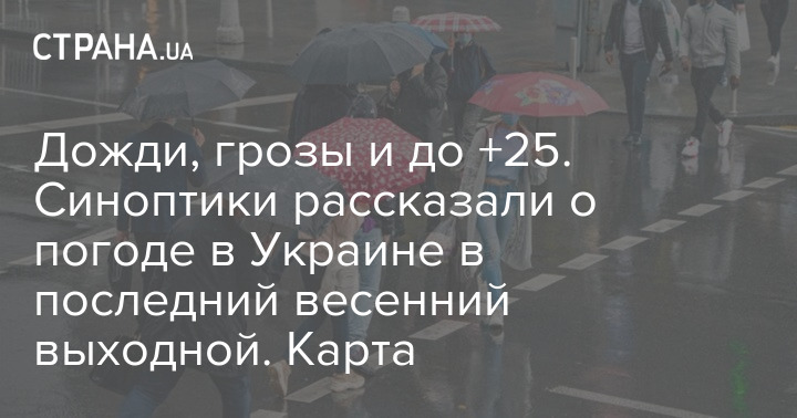 Дожди, грозы и до +25. Синоптики рассказали о погоде в Украине в последний весенний выходной. Карта