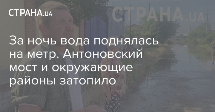 Жители района возле Антоновского моста, который также частично затоплен рассказывают, что за сегодняшнюю ночь вода поднялась на один метр и сейчас ее уровень достигает до двух метров в зависимости от ландшафта местности.