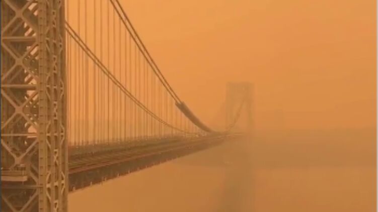 Нью-Йорк затянут дымом из-за лесных пожаров в Канаде. Скриншот видео