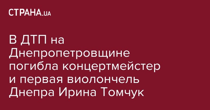 В ДТП с опрокидованием автобуса в Днепропетровской области, где пострадали 19 детей и двое взрослых, погибла первая виолончель Театра Оперы и Балета в Днепре Ирина Томчук. Об этом сообщил советник мэра Днепра Евгений Гендин на своей странице в Facebook