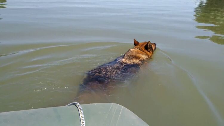 По данным пабликов, собаку смыло в Днепр вблизи Херсона, она доплыла до села Григоровка Лиманского района Одесской области.