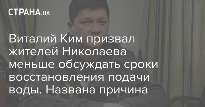 Глава Николаевской областной военной администрации Виталий Ким призвал жителей Николаева меньше обсуждать тему о том, когда в областном центре возобновится подача питьевой воды в краны.